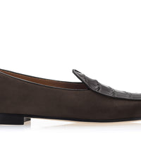SUEDE BELGIAN LOAFERS WITH CROCODILE INSERTS