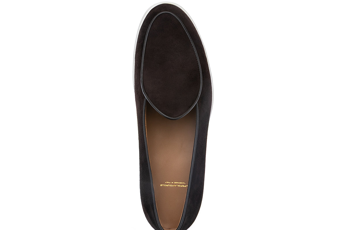 Expertly handcrafted in Vigevano, Italy — a city renowned for its shoemaking tradition — these slip-on feature a soft calfskin lining for lasting comfort and breathability. The contrasting white Margom® rubber soles, seamlessly integrated with the upper, provide lightweight support, clean lines, and a subtle contemporary edge.