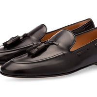 Handcrafted in Vigevano, Italy, according to the traditional “a sacchetto” technique with calfskin lining and leather soles.