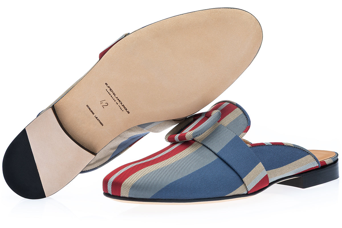 Designed for effortless yet polished styling, these mules complement linen trousers and lightweight shirts for relaxed seaside afternoons, while pairing equally well with tailored summer suits or refined resortwear for elegant evening settings. Their vibrant striped palette introduces a confident visual accent, making them ideal for both coastal escapes and cosmopolitan summer destinations.
