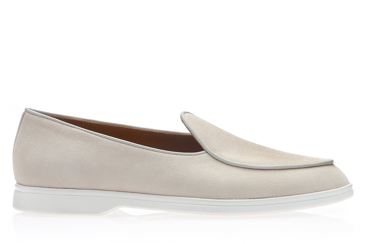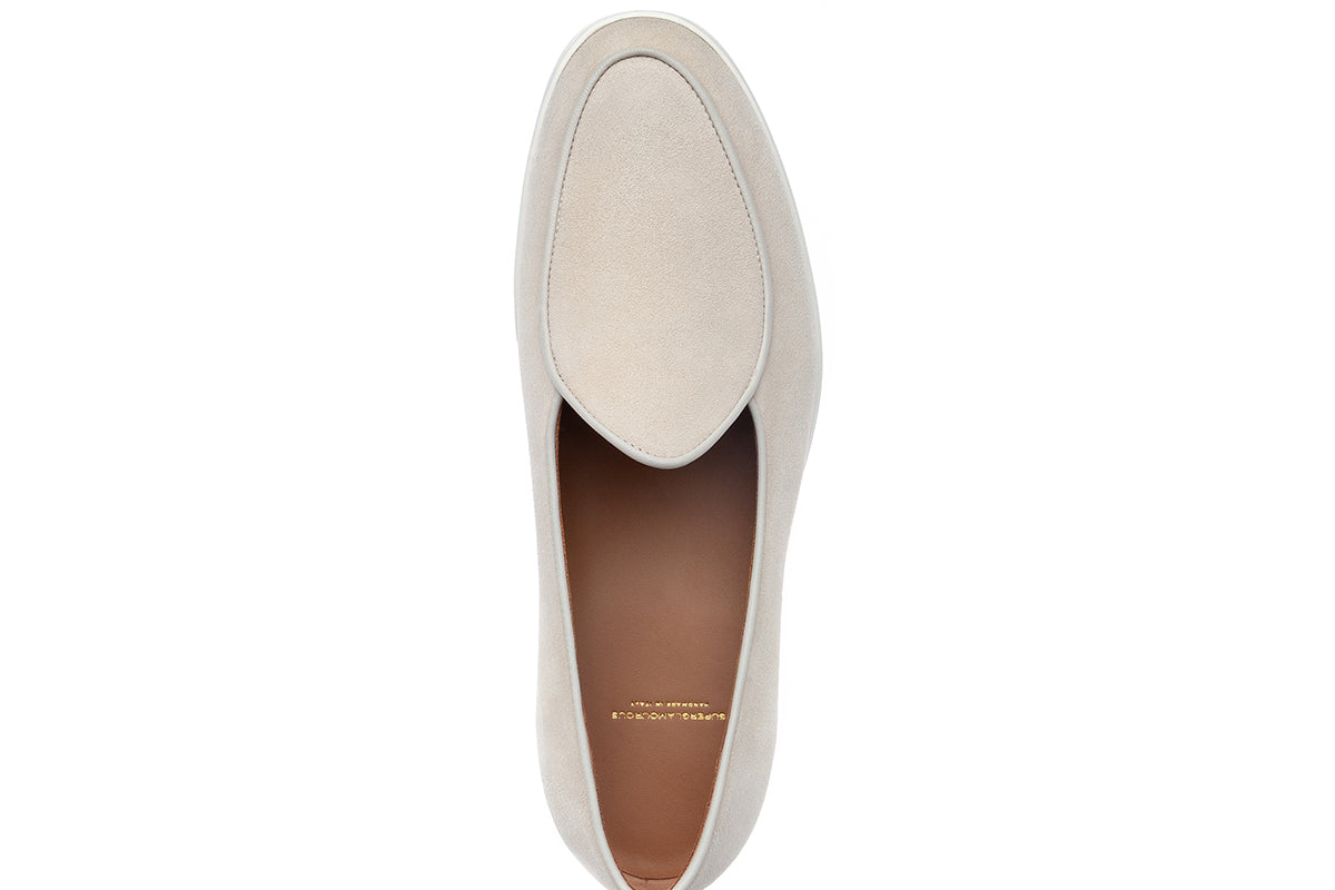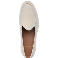 An elevated interpretation of relaxed elegance, our beige suede Belgian-style slip-on reimagines the iconic Tangerine silhouette in a fresh, refined tone. Crafted from velvety Italian suede and finished with tonal calfskin piping, this model delivers a soft, minimalist aesthetic that exudes effortless sophistication.